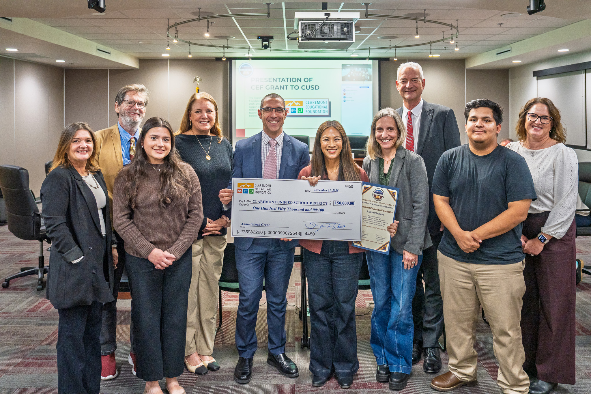 At the December 11 Board of Education meeting, the Claremont Educational Foundation (CEF) presented the district with a generous $150,000 donation, continuing a longstanding tradition of partnership and support for Claremont schools. Since 1991, CEF has played a vital role in strengthening educational opportunities for students across the district by helping sustain art, music, technology, and innovative classroom programs. This remarkable contribution reflects the dedication of CEF’s board members, volunteers, donors, and community supporters who remain steadfast in their belief that strong schools build strong communities.